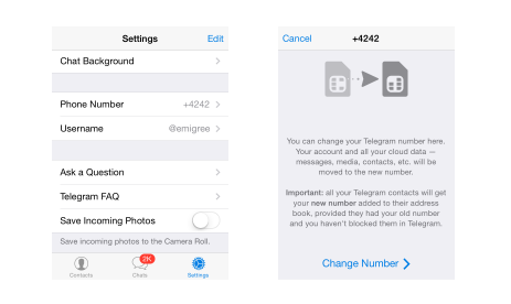 Telegram.me、更改号码和 PFS的方法
